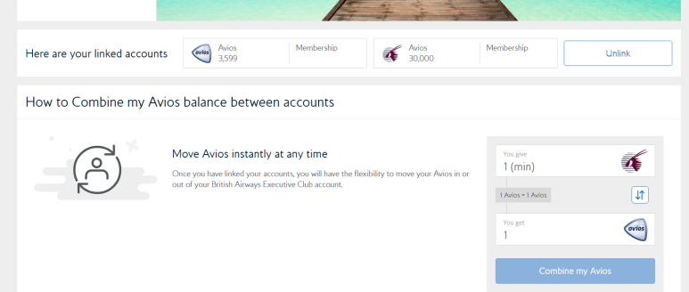 2. Manage My Account > Combine my Avios 클릭