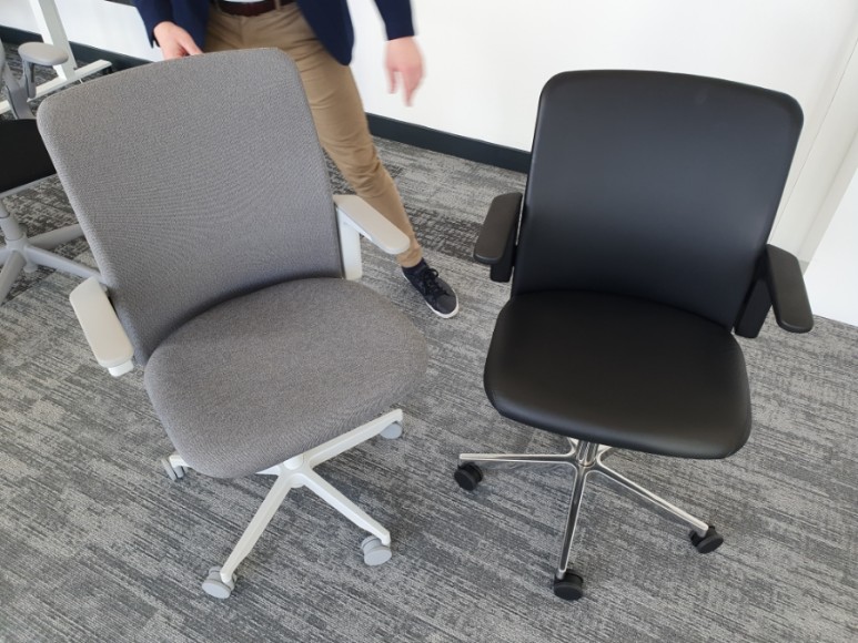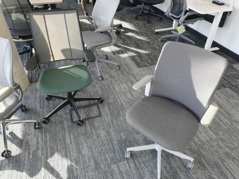 의자들 전부 책상 밑에 키보드 트레이가 있어서 키보드 위치가 낮은 책상들을 생각하고 디자인 한 암레스트 같았음. 실제로 같이 동행했던 직원이 보여준 휴먼스케일 책상들 모두 키보드 트레이가 따로 있었음.