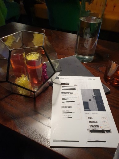 가격은 샷 두 잔, 칵테일 두 잔 해서 거의 50파운드 가까이 나온듯