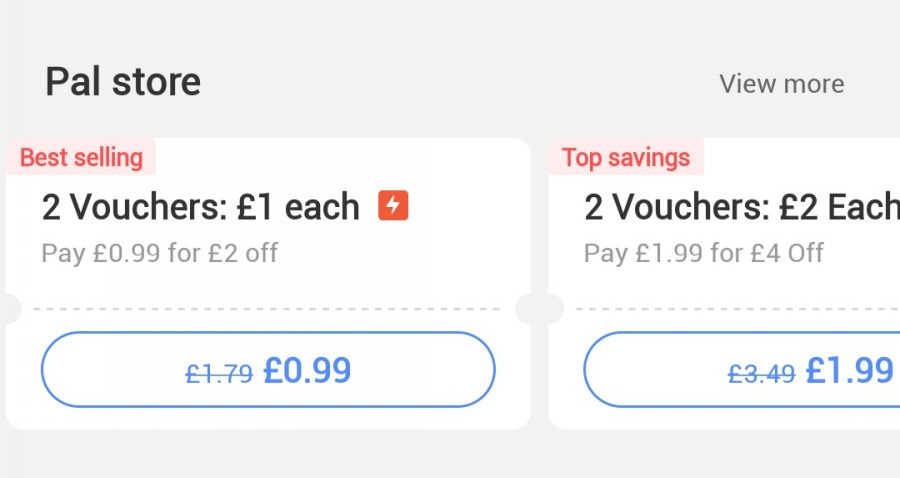 또 장점에 짤짤이 바우처 사용 가능이라고 적었는데, 아래 처럼 1파운드를 내면 2파운드를 할인해주거나, 2파운드를 내면 4파운드를 할인해주는 바우처를 살 수 있다거나, 가끔 이벤트로 1파운드 짜리를 뿌리기도 합니다.