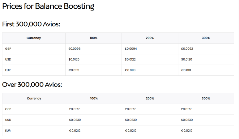 다만 Boost 는 한번에 원하는 만큼 구매하진 못하고, 내가 지난 30일간 모은 Avios 를 기준으로 1배, 2배, 3배 까지 돈을 내고 추가로 적립하는 시스템이며 3배 효율이 제일 좋다.