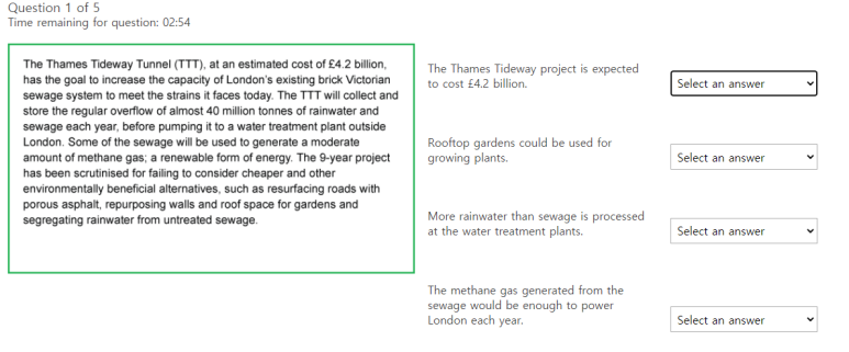 그 다음은 Verbal reasoning 인데 ielts 해보신 분들은 익숙하실 겁니다.