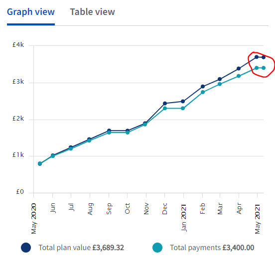지금까지 3400파운드가 납입됐고 연금회사의 투자로 지금은 3689 파운드가 되었습니다.