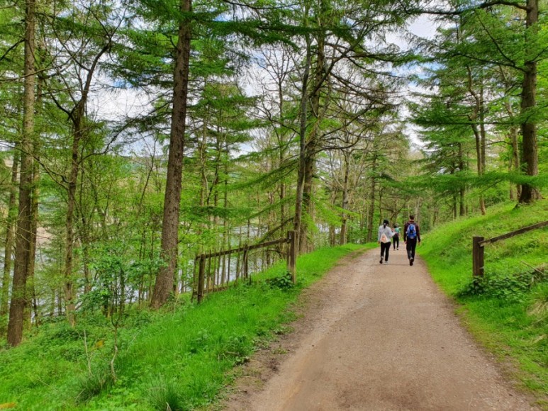 Win Hill에서 Ladybower 저수지 방향으로 걸음을 옮겼습니다. Hope 역에서 Win Hill 까지는 나무가 거의 없이 들판만 있었는데 이쪽길은 숲으로 되어 있어서 색다른 뷰라 기분이 좋았습니다. 또 같은 나무만 있는 숲이 아니라 나무가 다른 숲이 여러개 있어서 좋았습니다.