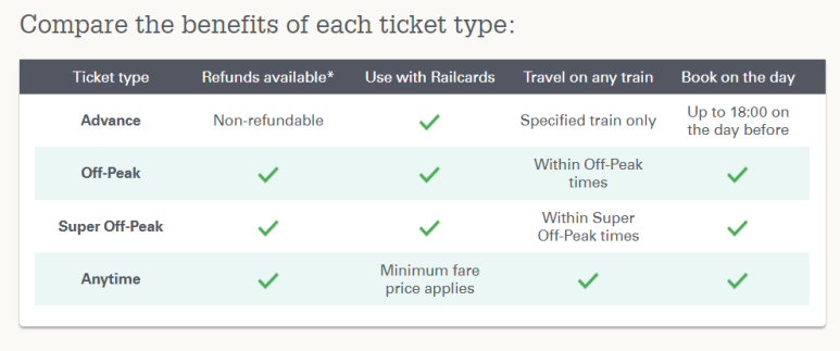 1.1 Off-Peak and Super Off-Peak fares are cheaper tickets for travelling on trains that are less busy. You may be required to travel at specific times of day, days of the week or on a specific route. 2.1 Tickets can be bought in advance or immediately bef