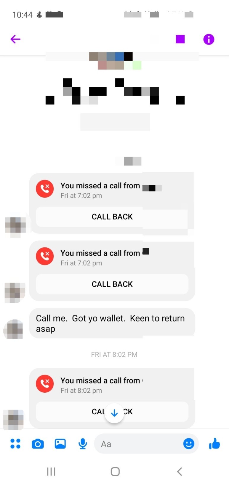 다만 여기서 주의하실게, 첫 번째 사진을 보시면 그 쪽에서 페이스북 콜도 걸고, 메세지도 보냈지만 그 때는 제가 받지 못했습니다.