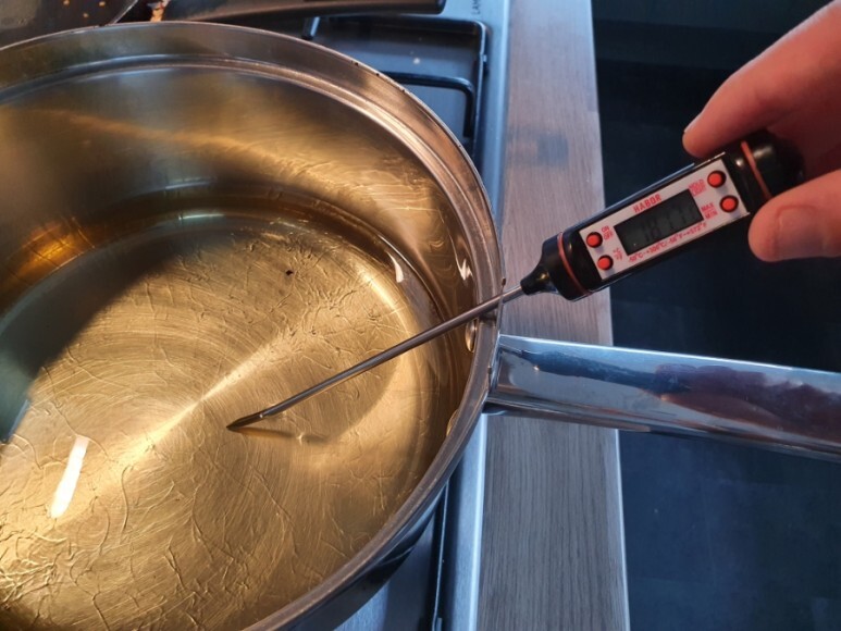 - 유튜브를 보면 뭐 튀김 반죽 조금 넣어서 3초 뒤에 떠오르면 다 된거라는데 그걸로는 정확히 알 수 없기 때문에 그냥 요리용 온도계를 사는걸 추천 드립니다. 아마존에서 얼마 안합니다.