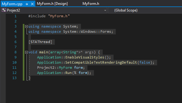 Project2::MyForm form;