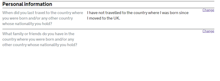 - 작성 당시에 이게 굉장히 헷갈렸습니다. 왜냐면 대부분의 시간을 한국에서 살았지만 중간에 1년 정도 영국으로 어학연수를 왔었는데 질문에는 a country outside the UK 라고 해서 어학연수 한 내용을 적어야 하나 마나 망설였는데 질문이 outside the UK 니 어학연수 기간은 빼고 진행했습니다. 대신 Cover letter 해당 내용을 추가 했습니다.