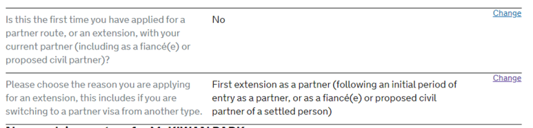 - 이게 진짜 엄청 헷갈렸던 질문인데 extention 은 처음이니까 Yes 로 해야 하나? 근데 입국은 배우자비자로 했으니 No 인가? 로 고민하다가 아래 페이지에서 정답을 찾았습니다. No 로 하시면 됩니다.