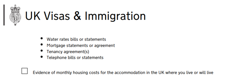 Evidence of monthly housing costs for the accommodation in the UK where you live or will live